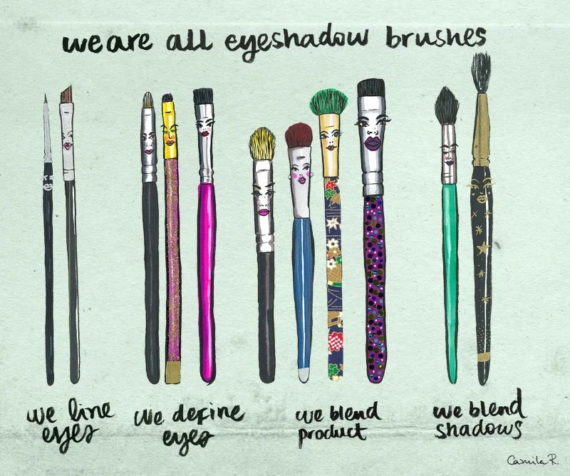 All eyeshadow brushes gathered to show us their different functions. From lining, defining and blending. Fighting for beauty!
